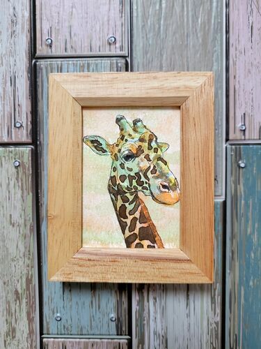 今回は1001枚目に描いた水彩画を紹介します!早速紹介します!「夕方のキリンさん」です。 「用紙」Ohuhu 水彩紙 ブロックタイプ 中紙300g(超厚口) サイズ:55㎜x75㎜ミニサイズの長方形にカットして水彩画を描きました。今回も0.03mmのピグマペンで描き、水…